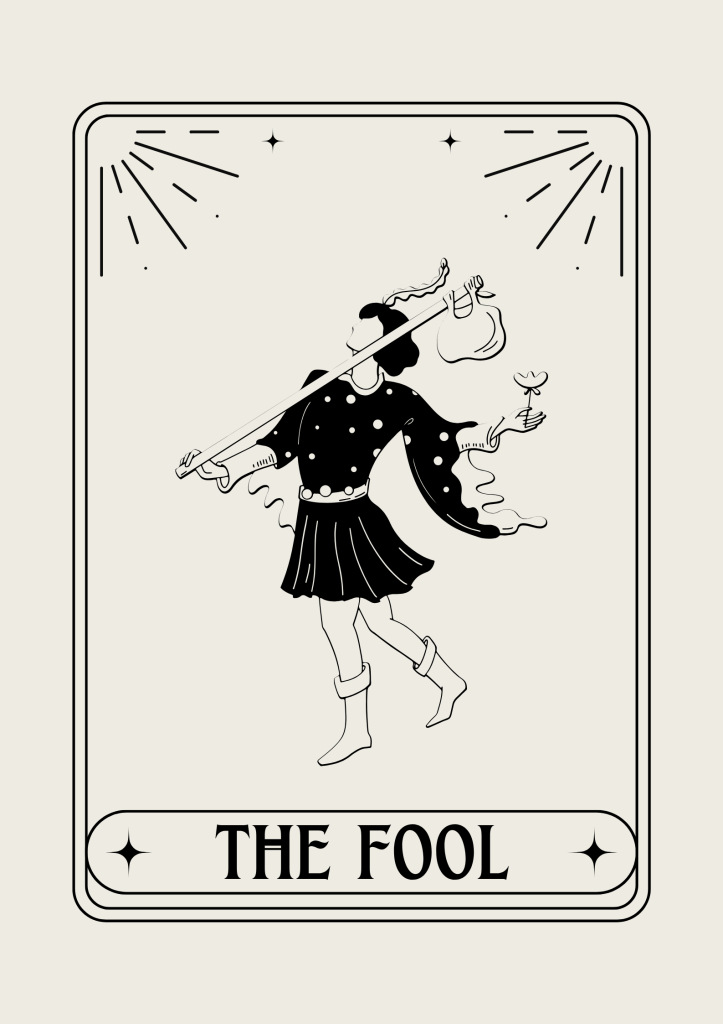 character; everyone thinks of the multi coloured, bell-carrying idiot that kept medieval courts entertained. Whilst forgetting the Fool could go everywhere and dispense wisdom to a Lord or King, and not have their head chopped off! The Fool is about energy, new beginnings, and boldness, rising to the challenge. It is also the start of the journey; embrace it.